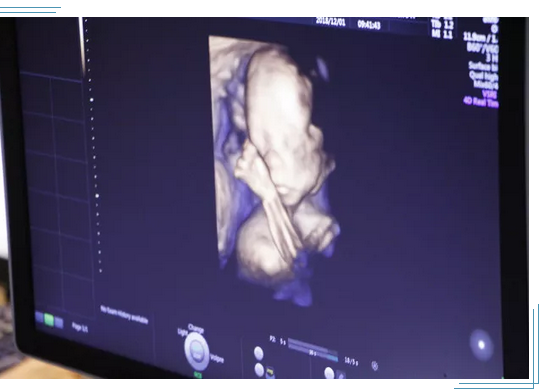2、4D超声可多方位、多角度地观察宫内胎儿的生长发育情况,为早期诊断胎儿先天性体表畸形提供准确的科学依据,可以实时清晰地观察宝宝动态运动。它不存在射线、光波和电磁波等方面的辐射,高分辨率容积成像(HD Live)、容积SRI (V SRI),新一代的4D 渲染模式,图像质量卓越。